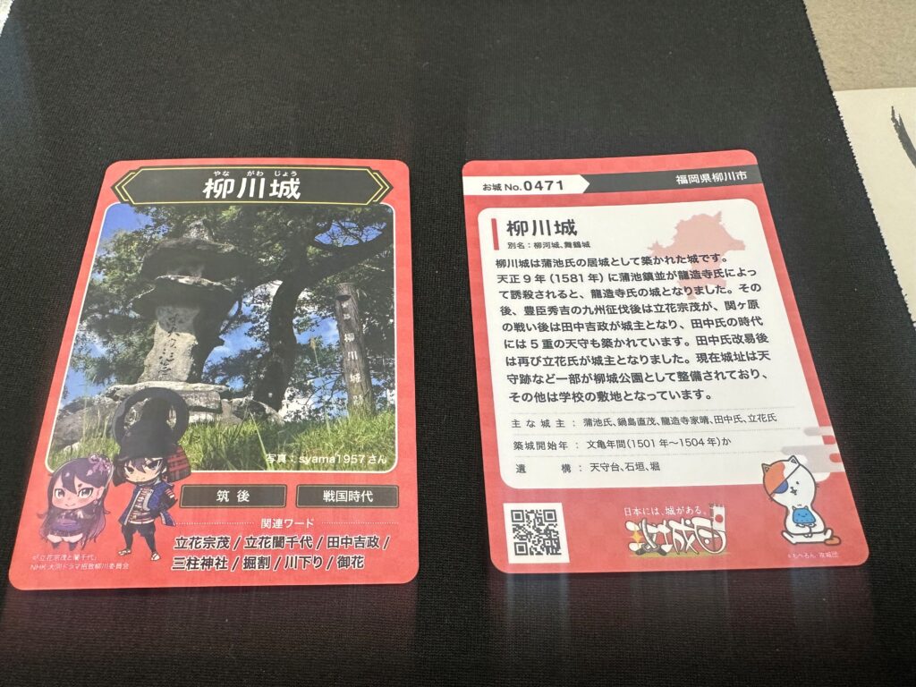 全国各地でお城のトレーディングカードが販売されていますが、ついに「柳川城」のカードも8/9から販売開始となりました。